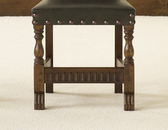 Cromwellian oak chairs with seat and back in leather. A huge range of leather is available to suit any dining room colour scheme. These are a bit of British history from the days when nothing but the finest bespoke oak furniture was in our homes.