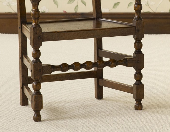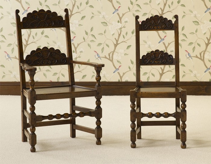 These handmade oak chairs are a design unique to the Peak District from circa 1660-1690. They are a stunning design of hand crafted oak furniture, handcarved in solid oak. These solid oak chairs also look superb with our cross ended oak refectory tables.