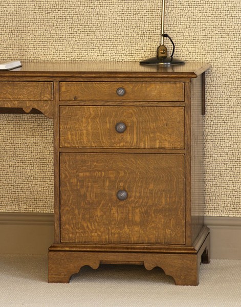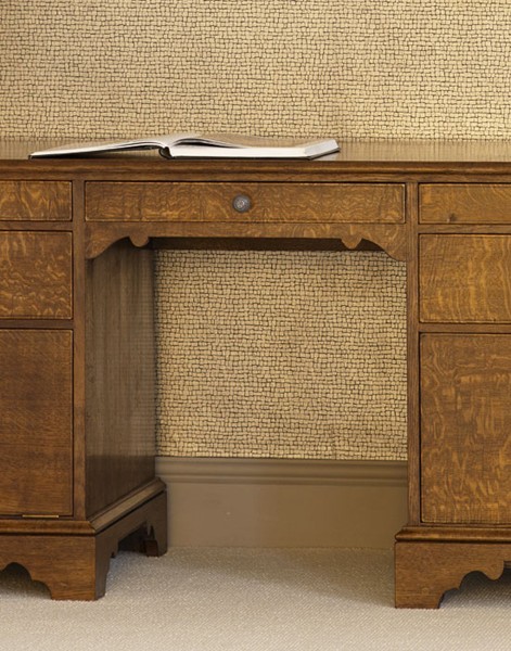 This piece of oak furniture was designed for our many clients with an office at home, who had already endured the frustration of searching the internet for something of quality which is solid oak and handmade. This is a 21st century oak desk which includes a drawer with rails to hang files from and a pullout oak shelf for a printer.
