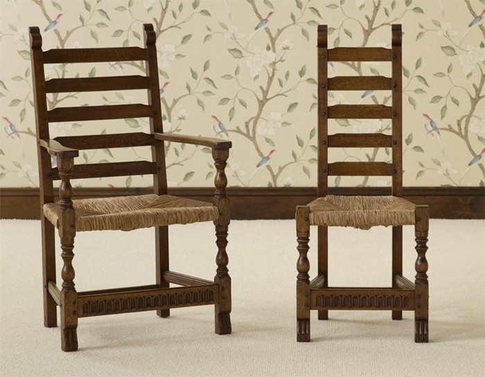 Ladderback chairs with rush seats. Dining room oak chairs with a unique rustic feel. The handmade rush seats beautifully complement any and all solid oak furniture already in the room.