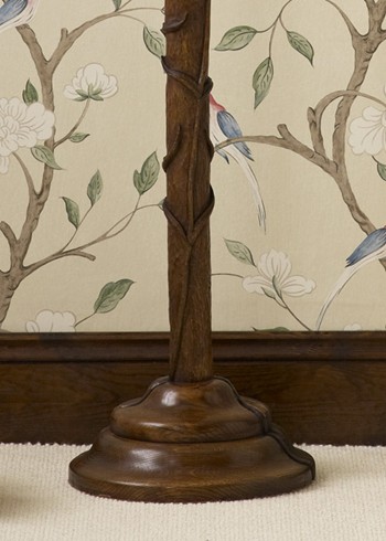 Perfect for a living room or as office furniture. This has flowers hand carved around the solid oak stem.